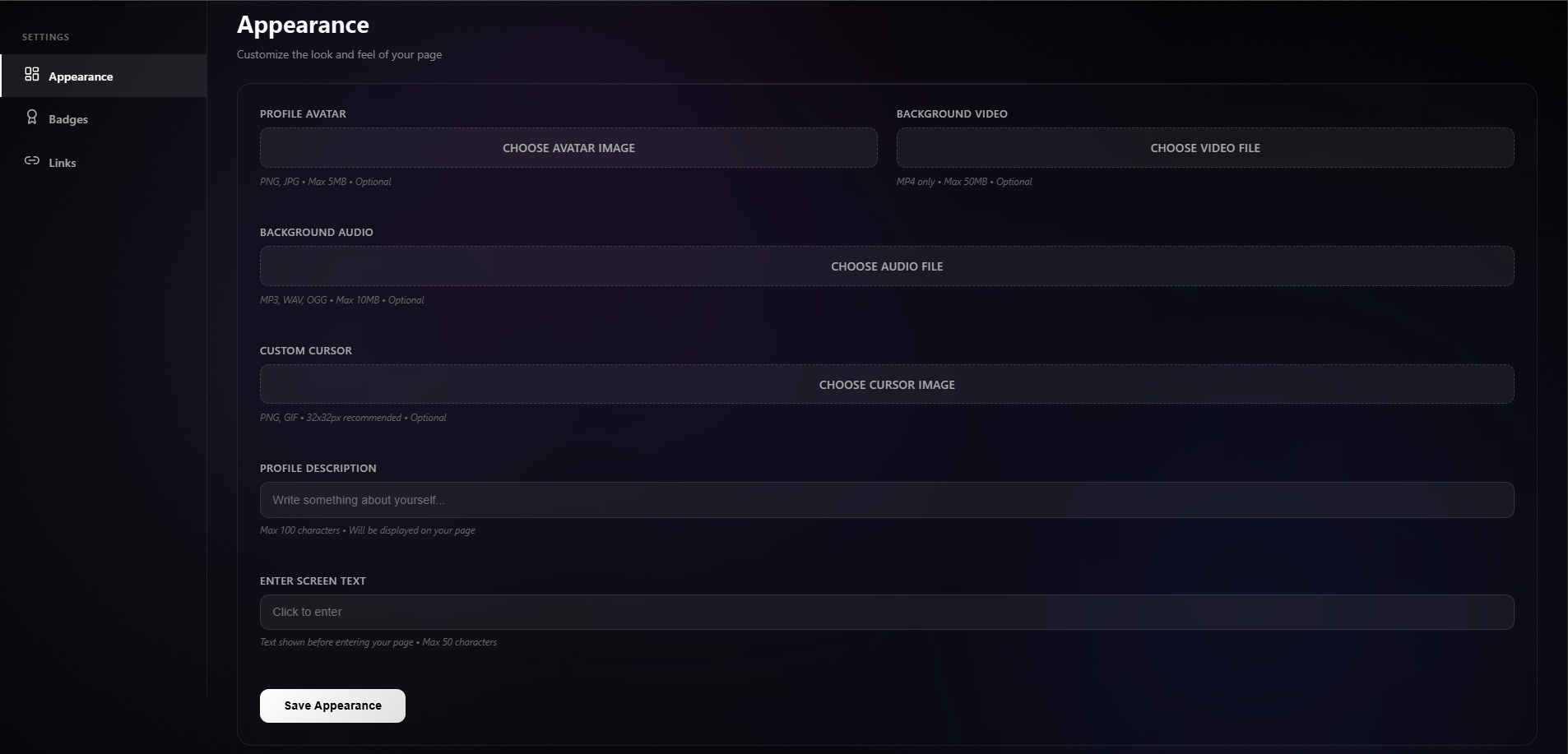 Personalize your page with custom backgrounds, music, avatars, and unique cursors.